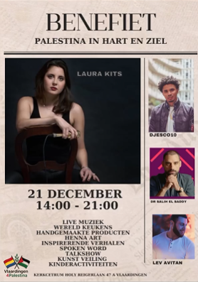 ![]() Op zondag 21 december staat Kerkcentrum Holy van 14.00 uur tot 21.00 uur in het teken van een benefiet festival, ‘Palestina in hart en ziel’, waarvan de opbrengsten bedoeld zijn voor de onschuldige slachtoffers in Gaza. Er is muziek (o.a. Ed Boender en de Vlaardingse Band De Aardappeleters), er is poëzie (o.a. spoken word artist Levavitan), er is kunst, er is een talkshow, er worden handgemaakte spullen verkocht, er is eten uit diverse keukens, er zijn organisaties aanwezig als Oxfam Novib, Tent of Nations, Plant een olijfboom, Amnesty en Pax. Ook aan de kinderen is gedacht. Als kerkenraad ondersteunen wij dit initiatief van harte. Deze benefiet is niet politiek en staat los van (verschillen in) religie. Het wordt een inspirerende dag vol muziek, kunst, eten en verhalen. Vlaardingen heeft de grootste Palestijnse gemeenschap van Nederland en deze dag biedt een mooie kans om mensen samen te brengen en verbinding te creëren. Dat is wat de organisatie voor ogen staat. Vanuit onze gemeente zijn er ook vrijwilligers bij betrokken. Tijdens de eerste Open Viering van afgelopen zondag vertelde initiatiefnemer Amina Hanif op bevlogen wijze waar het om gaat: dat wanneer je een ander in de ogen kijkt, je de ander als mens ziet, ongeacht achtergrond, afkomst of religie. De toegang is gratis. Kom vooral kijken, u kunt binnenlopen wanneer u wilt. Hier vindt u het programma van de dag. |