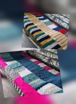 Het is de bedoeling een lange reep (2 m.) te breien. De breigroep maakt van de repen een deken. 42 steken opzetten met naalden 4 en ribbels breien (alles recht).