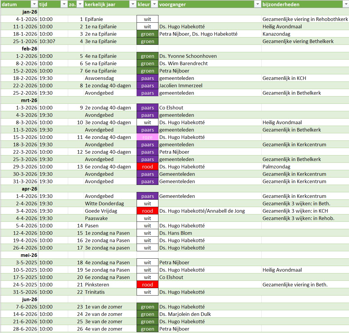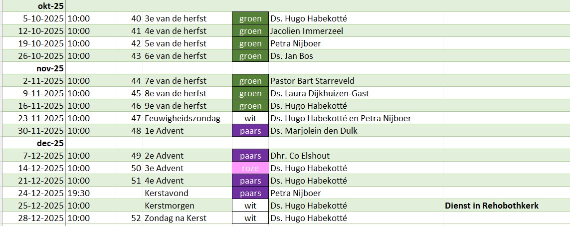 Activiteiten > Vieren > Kerkdiensten - Preekrooster